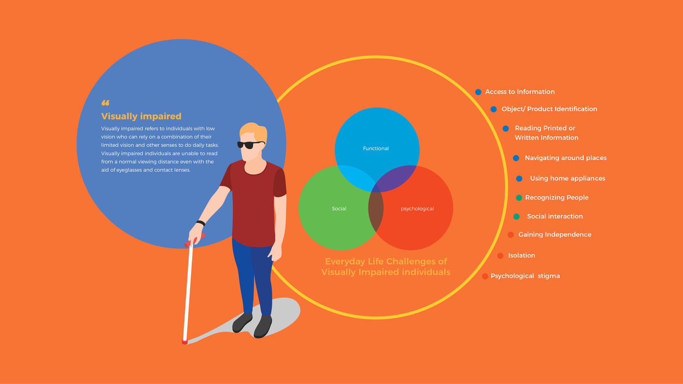 As humans, we interpret and connect with our surroundings using our senses. All the senses are essential for our survival, but we tend to depend more on our sight. We live in a world that is visually dominated, sight is the most significant way of receiving and interpreting information from the world. But for visually impaired individuals who have limited sight have to face a number of challenges on an everyday basis from accessing visual information to traveling independently, which affects their ability to carry out the day-to-day activities.